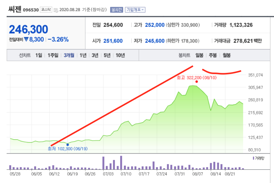 코로나 관련 이슈에서 가장 상승한 종목은 역시 씨젠이라고 할 것 같은데요. 어느덧 코스닥 시총 2위를 기록하며 거대한 주식으로 변모하고 있습니다.