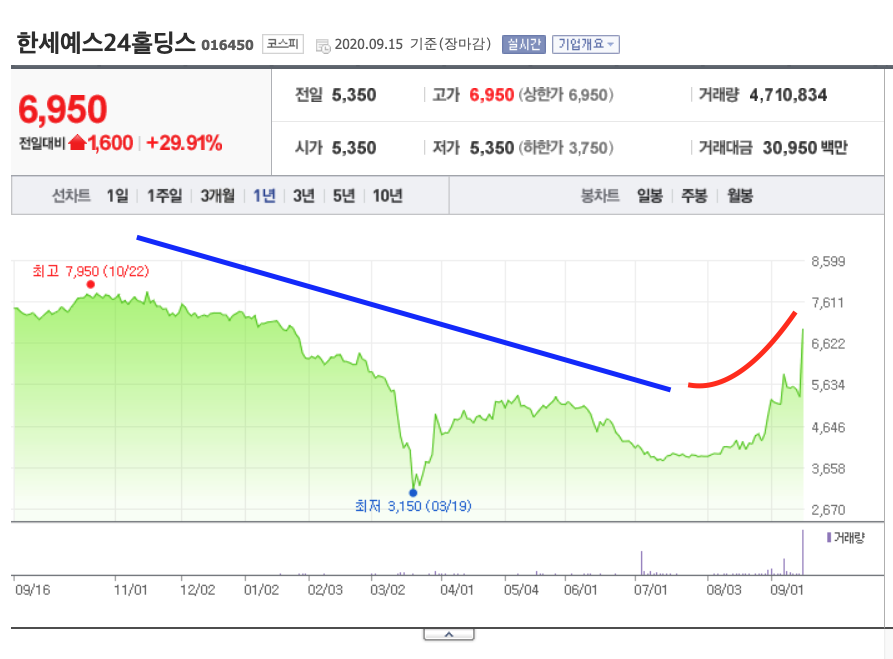 오늘 주식시장에서 상한가를 기록한 두 가지 종목을 분석해보려고 합니다. 오늘의 상승패턴이 매우 유사한 모습을 보여주었습니다. 바로 한세 예스 24 홀딩스와 예스 24입니다.