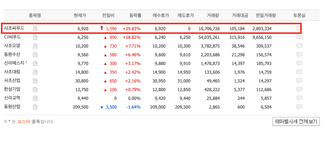 수산 테마가 상승세라고 합니다. 수산 테마 종목 중 가장 큰 폭의 상승을 기록한 회사가 사조씨푸드인데요. 수산 테마는 왜 상승세이고 사조 시푸드는 어떤 호재 때문에 상한가를 기록했는지 살