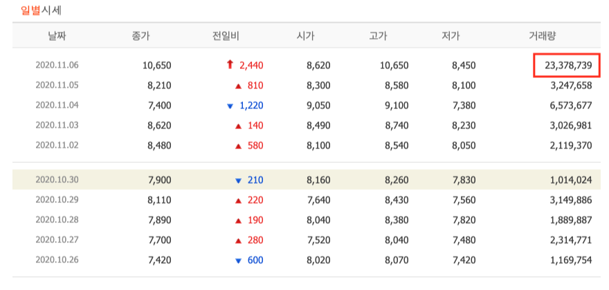 10월 초 큰 폭의 상승을 경험한 주가는 예전에 저항선에서 지지를 만들며 상승의 기회를 엿봤는데요. 지난 금요일 11월 6일 52주 최고가를 갱신하며 큰폭의 상승을 보여주였습니다.