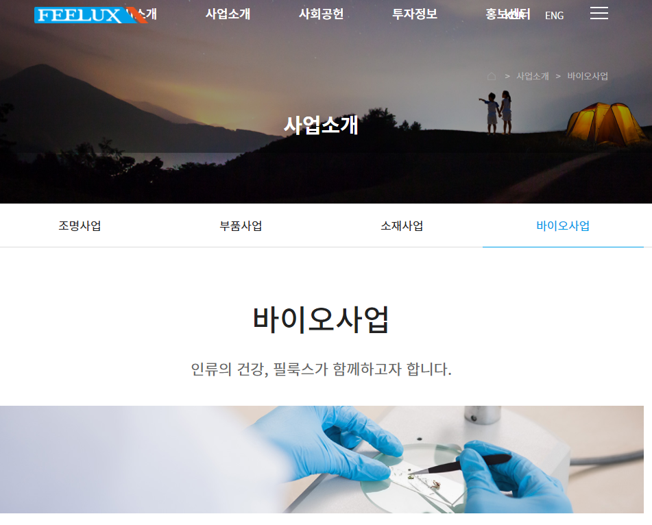 필룩스는 보암산 업 주식회사로 설립되었다고 합니다. 2000년에 상호를 변경하여 필룩스로 불리고 있습니다. 필룩스 및 종속회사는 조명사업부문, 부품사업부문, 소재사업부문, 바이오사업부문, 기타 사업부문의 5개 사업 부분 체제를 이룹니다.