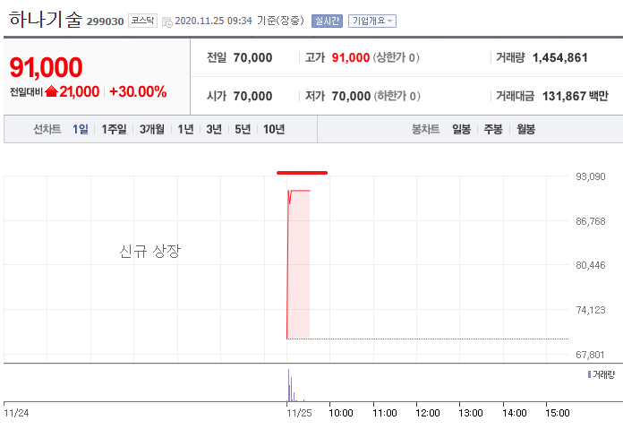 과연 하나기술이 11월 25일 상장일 상한가를 기록하며 장을 마감할 수 있을까요? 귀추가 주목되고 있습니다.