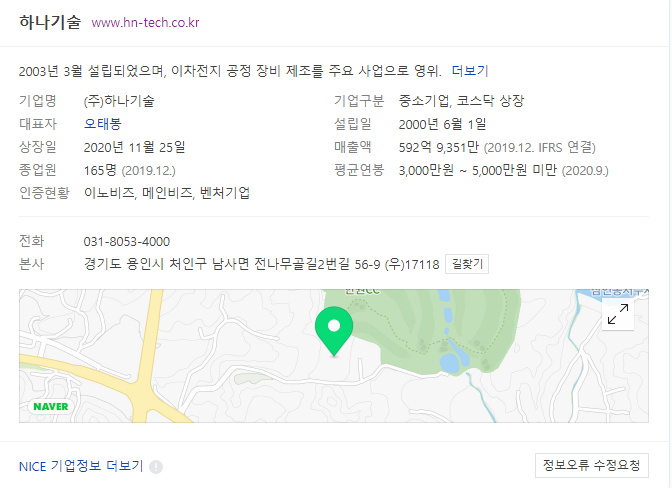 투자할만한 가치가 있는 회사인지 판단하려면 뭐하는 회사인지를 따져봐야 합니다. 하나기술은 2020년 3월 설립되었으며, 이차전지 공정 장비 제조를 주요 사업으로 영위하고 있습니다.