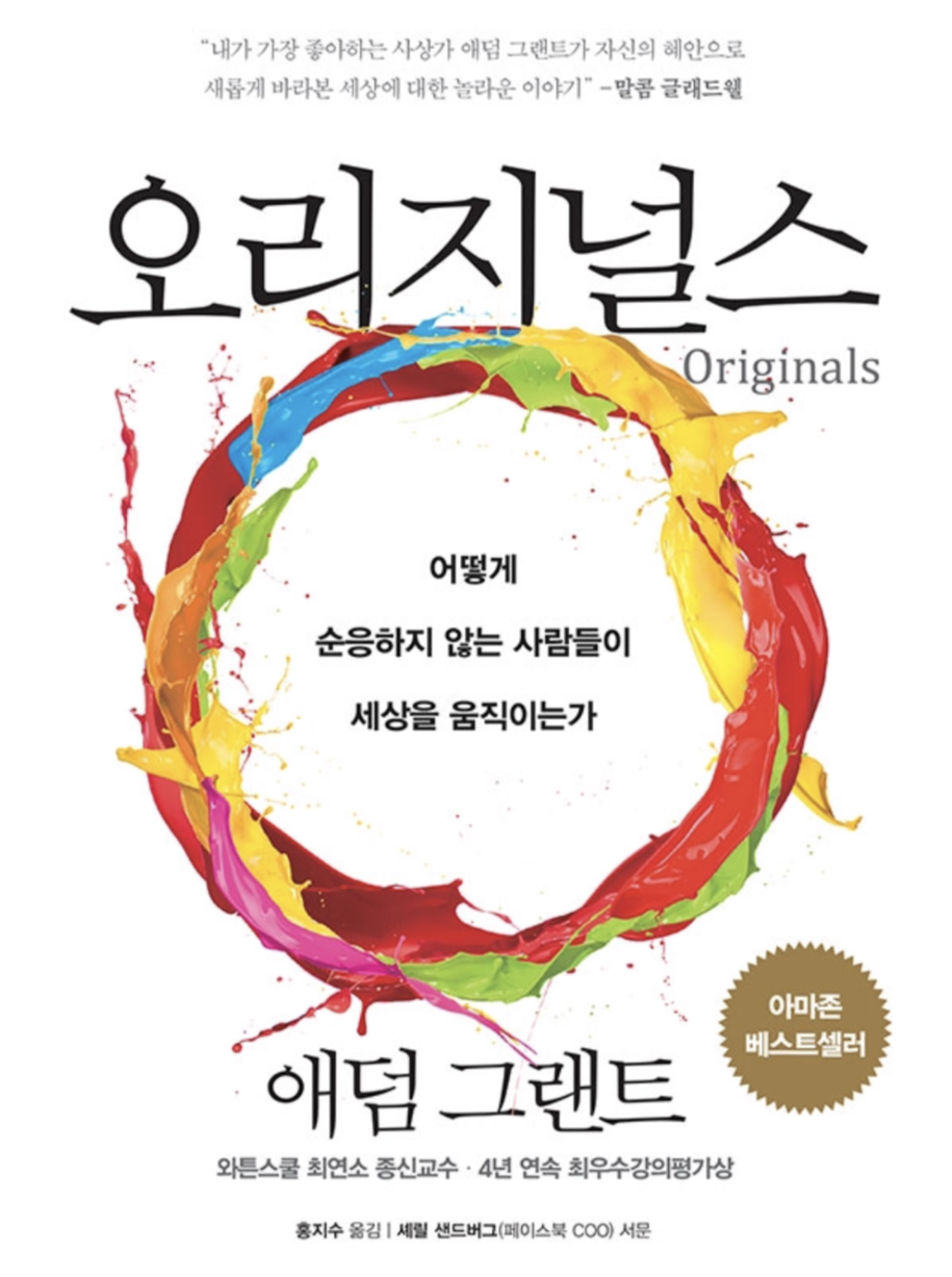 이 책을 살펴보면 오리지널리티를 찾기 위한 수많은 사람들의 사례를 담아두었다. 한번씩 읽어보면 좋은 내용을 볼 수 있을 것이다.