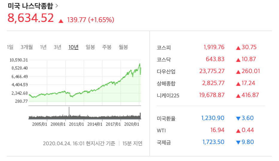 | 2020년 4월 24일 코스피 주가 (0) | 2020.04.26 |