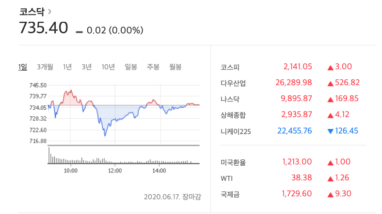 코스닥의 경우 오늘 하루 종일 출렁거리는 모습을 보여주었는데요. 다만 그래프의 추세는 차츰 안정이 되어가는 모습입니다. 한반도 긴장의 경우 이미 앞서 언급했던 2017년 북핵 실험이 한참이던 최악의 시기는 지나왔기 때문에 주식에 반영되는 힘이 예전만 못한 것으로 보입니다. 다만 북한의 움직임은 여전히 예측불가하기 때문에 어떤 방식으로 도발을 해올지 알 수 없습니다. 전체적인 주식의 흐름과 함께