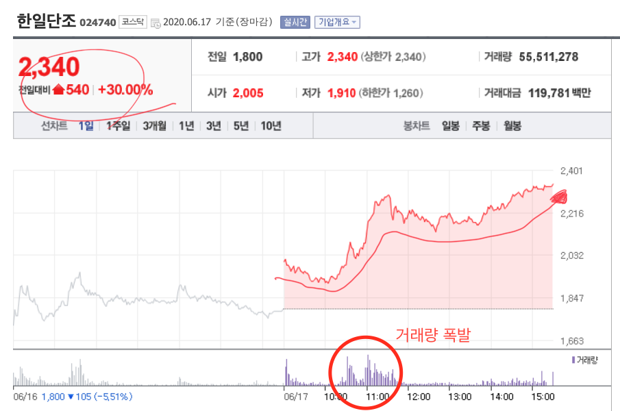 코로나 이슈가 잠잠해 지고 이제 매일매일 새로운 이슈에 주식이 출렁거리고 있습니다. 외국인과 개인 투자자 사이의 매수 매도 물량 싸움이 치열한 가운데 상한가를 기록한 한일조가 화제입니다.