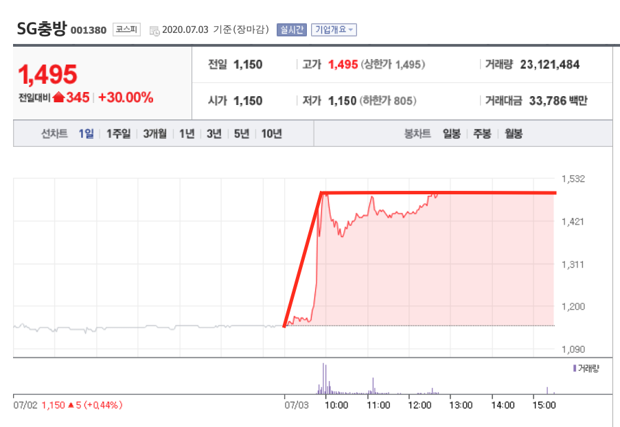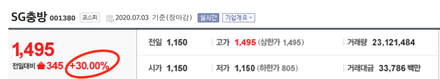 지난 코로나 19 여파로 632원까지 하락했던 SG충방이 금일 상한가를 그리며 상승세를 보이고 있습니다. SG충방에 어떤 일이 있었던 걸까요?